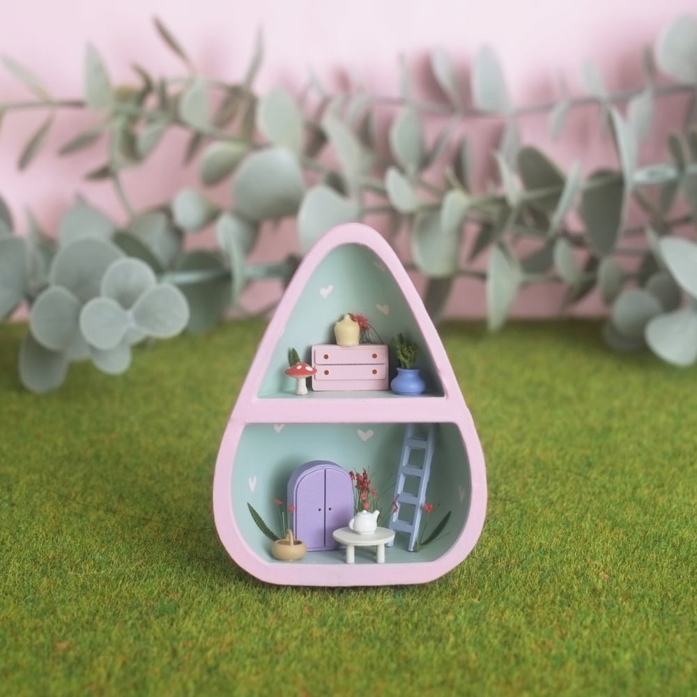 ・Miniature strawberry-shaped house, handmade using resin, polymer clay and acrylic paint.