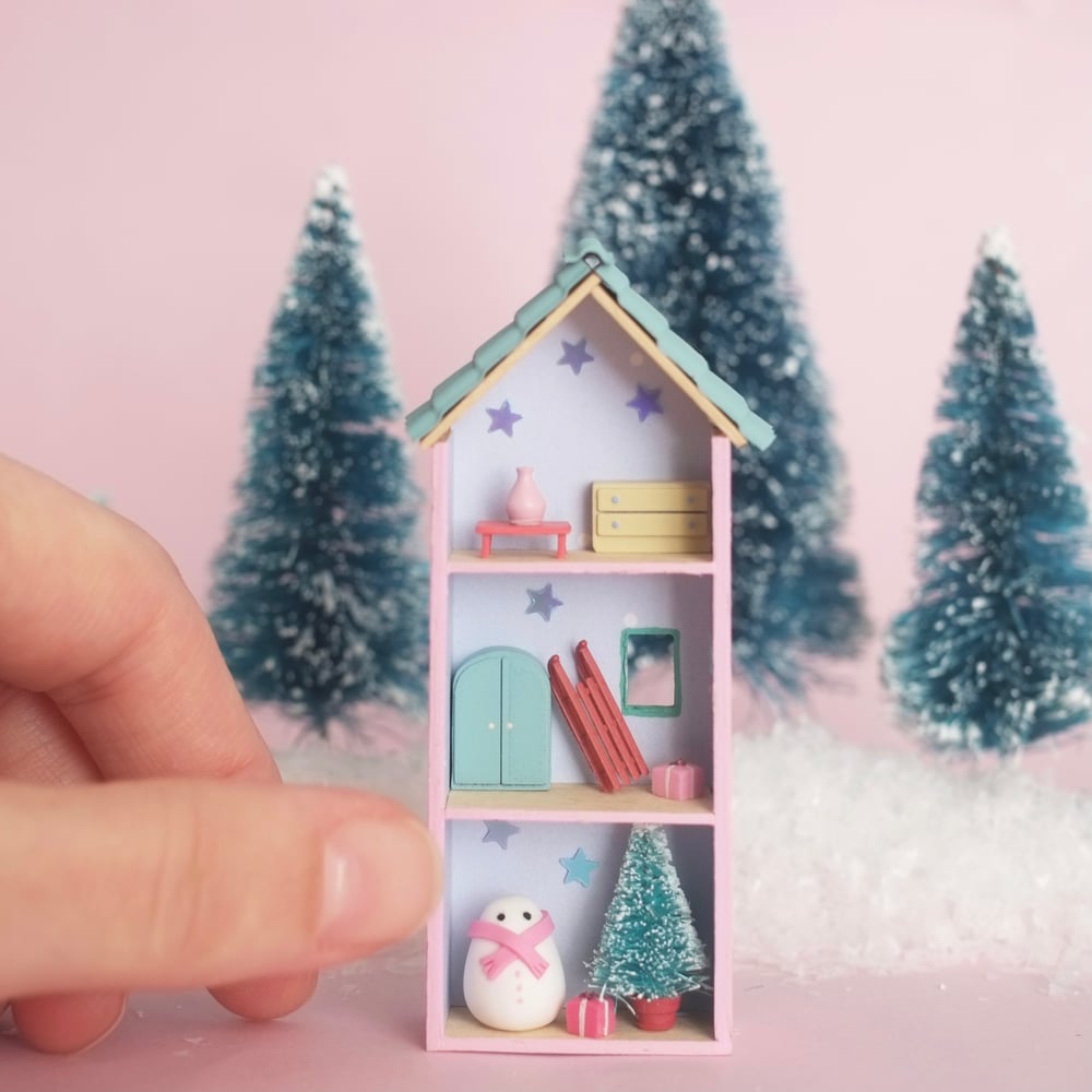 ・Wooden tiny miniature house. Special for Christmas, handcrafted using linden wood, resin, polymer clay, acrylic paint, cardboard and varnish.